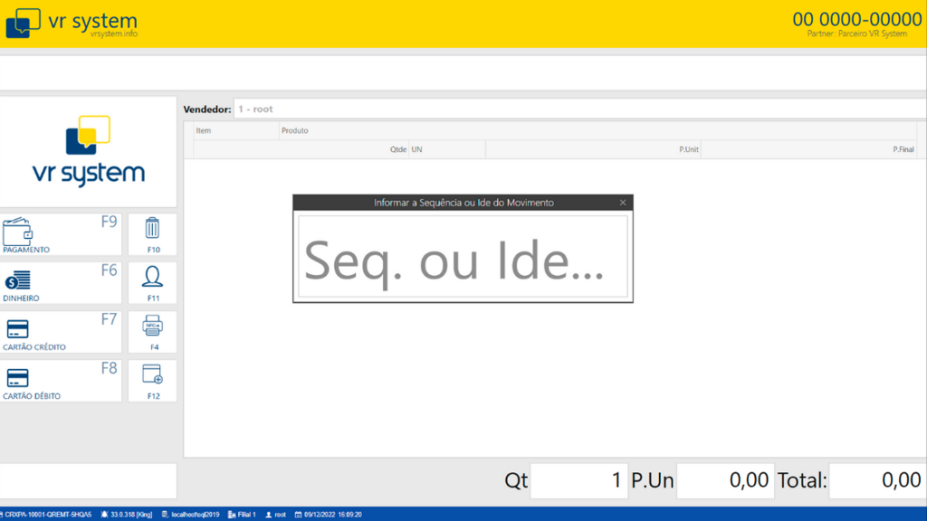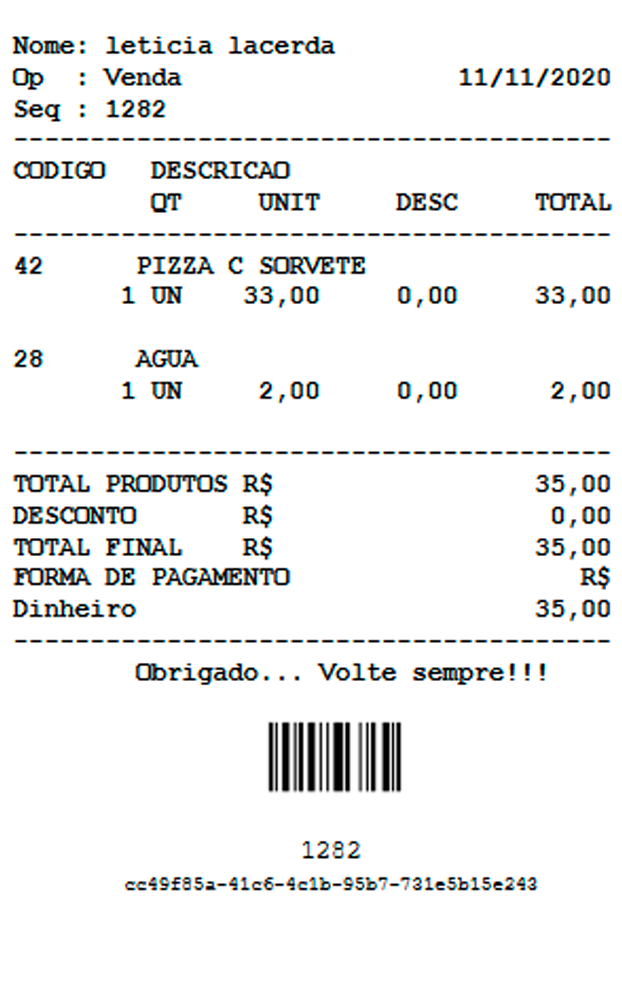 Na tela do caixa aparece a opção para que seja digitado o número da sequência da venda ou bipado o código de barras gerado do movimento.