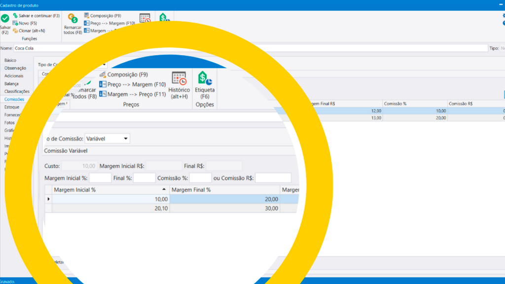 A comissão do produto pode ser calculada de duas maneiras, fixa: fixando um valor ou percentual a ser computador ou variável: onde podemos determinar um percentual de comissão de acordo com a margem de lucro que foi vendido o produto.